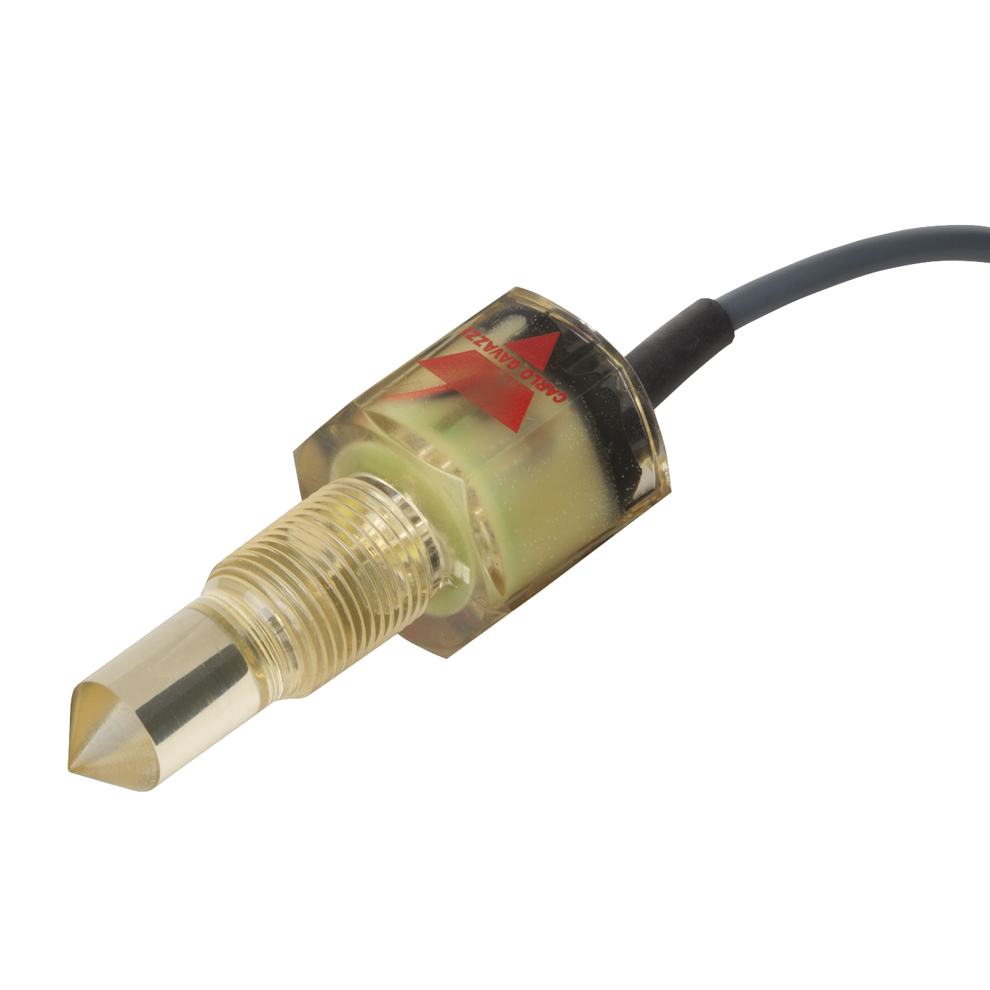 Sensor para detecção de nível de líquido. Alta resistência química. Luz infravermelha. Carcaça em polissulfona. Luz ambiente de 0 a 100 lux. Conectores PNP e NA, 10-40 VCC, cabo de PVC de 2 m. IP67.
