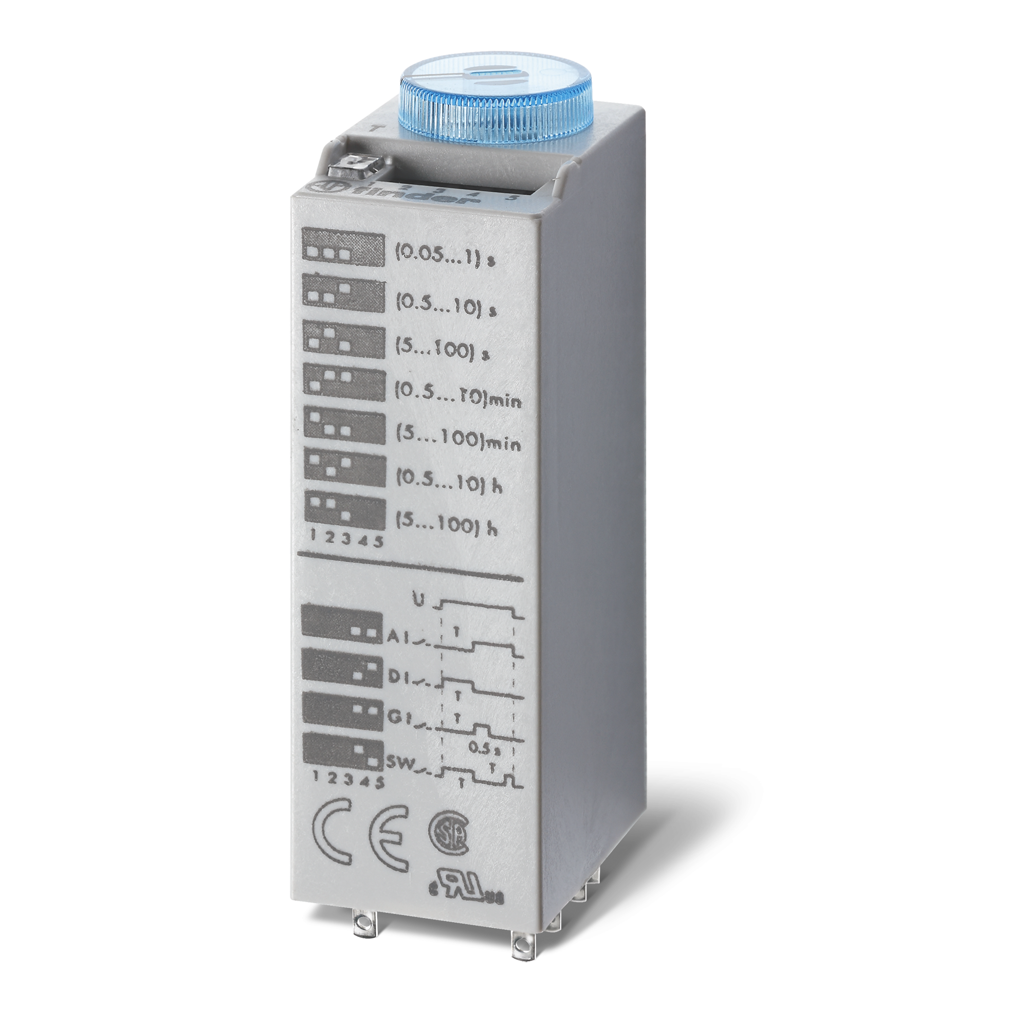 Temporizador plug-in com 4 contatos de 7A. Instalação em bases Série 94.